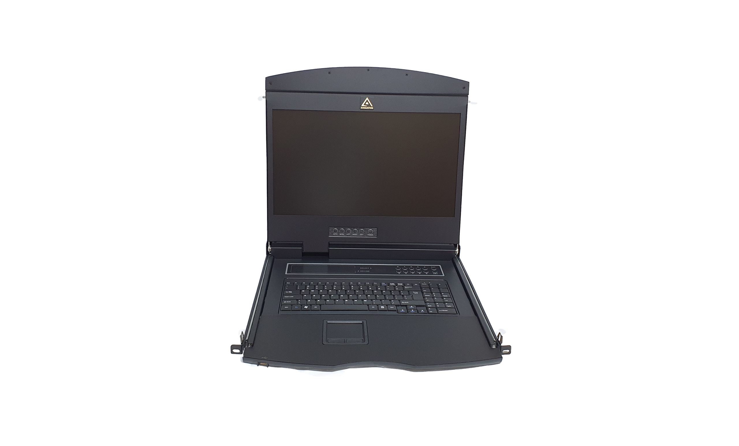 - Integrating a 18.51” LED screen, keyboard and mouse pad in a 1U rackmountable sliding housing. The short-depth design console is ultilized for narrow space for short-rack mounting in condensed area. The AL-V900L can connected directly to server for convenience configuration. Compatible with Angustos or